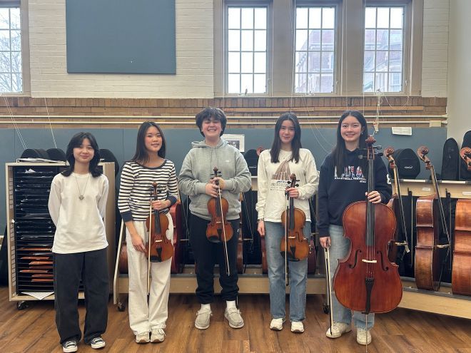 The Piano Quintet features Abigail Fong and Alexander Cebenoyan on violin, Ava Toolan on viola, Charlotte Davis on cello, and Sarah Nazari on piano.