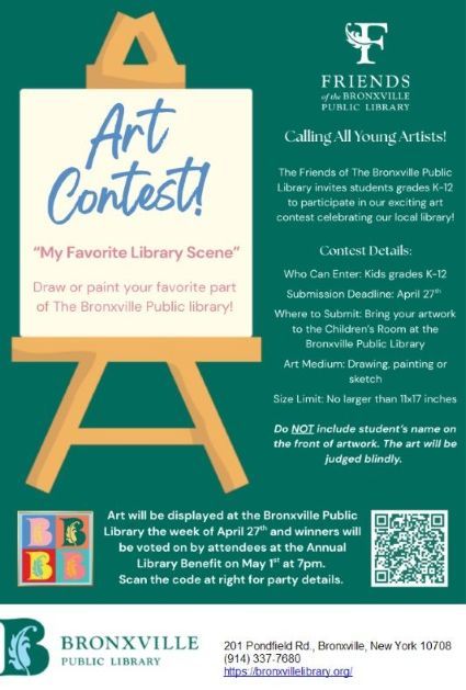 April 8, 2026: The Friends of the Bronxville Public Library invites students in grades K-12 to participate in an exciting contest celebrating the library!