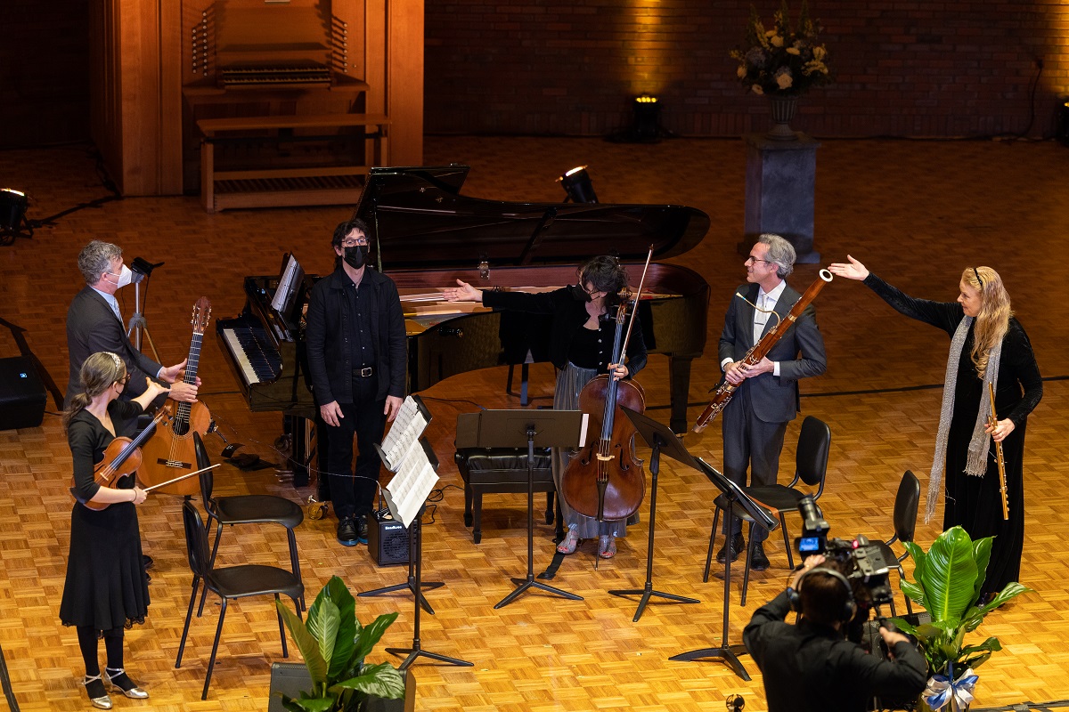 Broadway great Norm Lewis made a return visit to the Hoch Series and performed songs from his starring roles from Phantom of the Opera and Les Miserable as well as a tribute to Stephen Sondheim’s passing this year. Audiences were also treated to the world premiere of “Bedrock, Gently Tilting,” a new chamber work by Matt Van Brink commissioned to honor Kathleen on this 25th anniversary as well as performances of Ravel and Schubert and Martinu by Emerson Quartet violist and Hoch Chamber Music Series Artistic Director Lawrence Dutton and Emerson String Quartet violinist Philip Setzer, with violinist Emily Kalish, cellist Chungsun Kim, pianist Jon Klibonoff, guitarist Rami Vamos, flautist Clare Hoffman, and bassoonist Keith Kreindler. The event will be hosted by George Lekovic and Katie Suss and benefit chairs Claudia Amboss and Zlata Gleason.