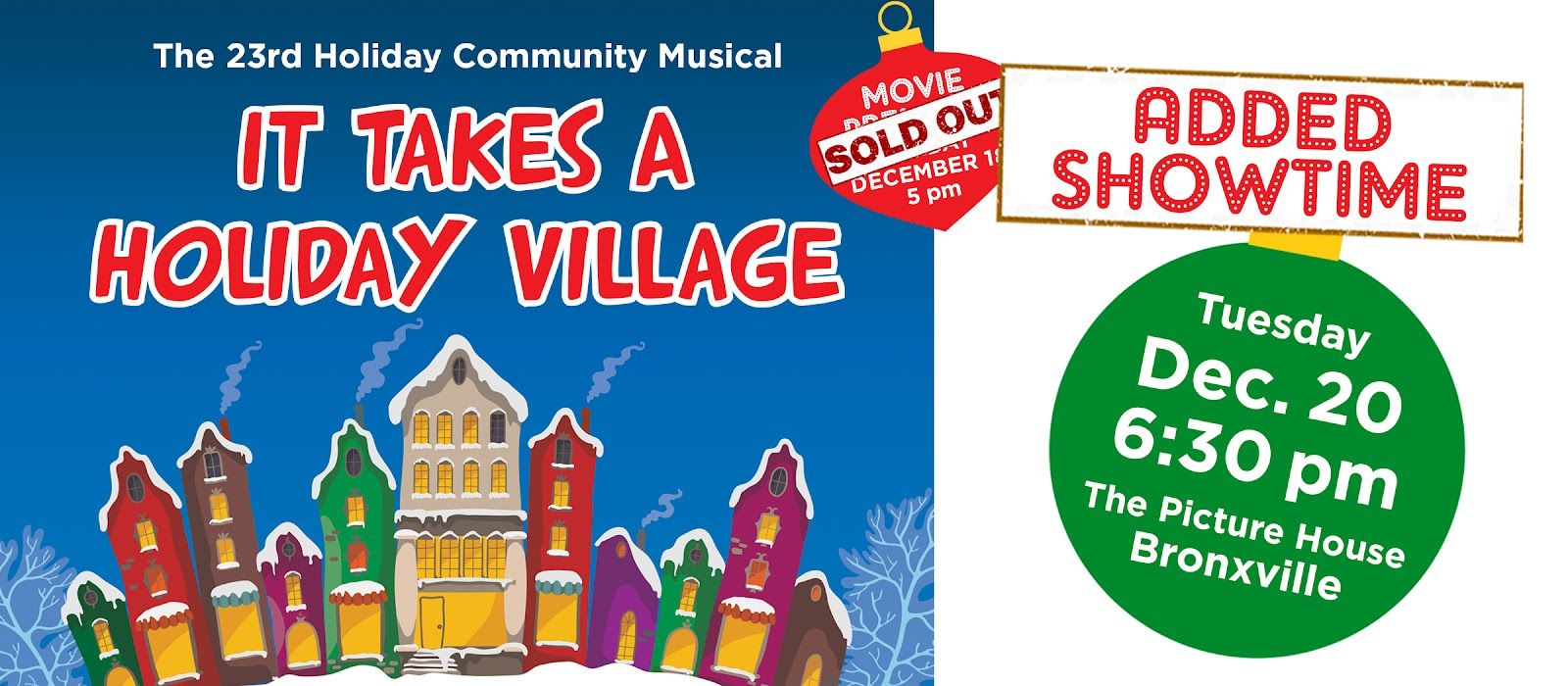 Dec. 7, 2022: Concordia Conservatory announces an added showing of its 23rd annual holiday community musical movie, “It Takes A Holiday Village” on December 20 at 6:30 pm at The Picture House, Bronxville.