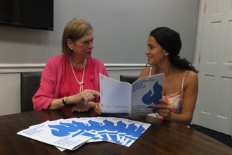 Pictured here: Priscilla Toomey and Juliska Martino of Julia B. Fee/Sotheby's International Realty look over the Bronxville Adult School's 2016-2017 fall/winter catalogue.