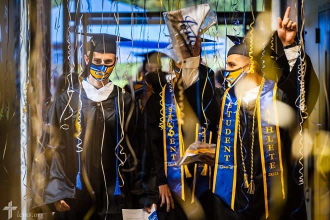 May 12, 2021: The mood in Sommer Center for Concordia’s 2021 Parade of Graduates could not help but reflect the real and ever-present apprehension at the rapidly approaching end of the beloved institution’s 140-year legacy. Yet pride, joy and hope took precedence for the day as the Concordia community celebrated their graduates and the hundreds of new beginnings they represent.