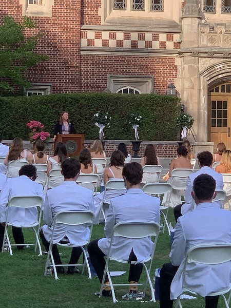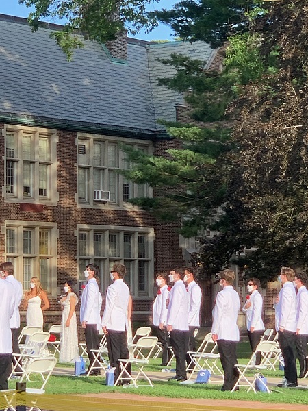 Parents were not permitted to attend the ceremony, as New York State's Department of Health (NYSDOH) restricted in-person graduations to a maximum of 150 individuals. (Bronxville's Class of 2020 has 132 students). Some family members and guests watched from the sidewalk in front of the school, while hundreds opted to live-stream the hour-long ceremony from their air-conditioned homes.