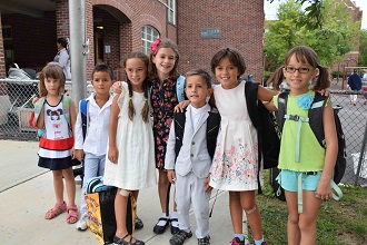 Pictured here: Bronxville School students returning to school.