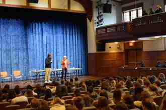 Feb. 10, 2016: More than 20 prominent speakers, including a Syrian refugee and MSNBC Morning Joe hosts Mika Brzezinski and Joe Scarborough, participated in an event titled "Understanding the Syrian Refugee Crisis" with Bronxville High School students at the Student Faculty Legislature Day on January 29.