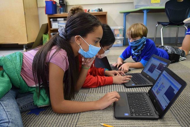 Jan. 5, 2022: Bronxville Elementary School fourth graders have been coding their own interactive “Create Your Own Adventure” stories using Scratch, a block-based visual programming language and website. As part of technology specialist Claire Hollocou’s class, they have been learning how to gain user input, code global variables and use conditionals.