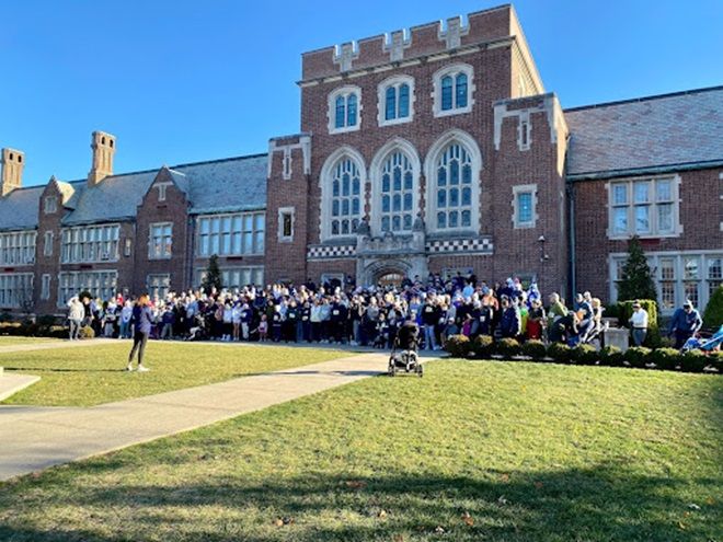 Despite the cold temperature, Bronxville residents, school families, current and former school staff, alumni, and many friends of the Welling family gathered together to honor Katie and Tom. Helen Welling, as well as Kurt and Thomas, Jr. and their families, were in attendance and welcomed runners and walkers at the front entrance of the Bronxville School.