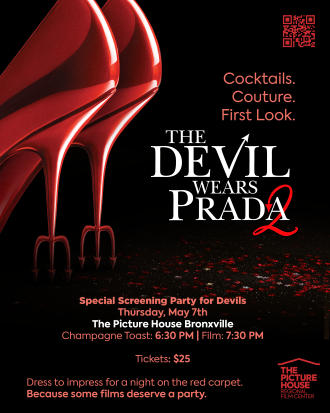 May 7, 2026, 6:30 PM Champagne Toast and 7:30 Screening: Cocktails. Couture. First Look. Special Screening Party of the Devil Wears Prada 2 at the Picture House Bronxville. Step onto the red carpet, strike a pose at our step-and-repeat, and come dressed to the nines for a night of fashion, fun, and film. Enjoy prosecco and light bites before the screening—and don’t miss a curated pop-up, perfect for discovering your own runway-worthy look.Tickets: $25 — includes the full experience Ticket Link: HERE