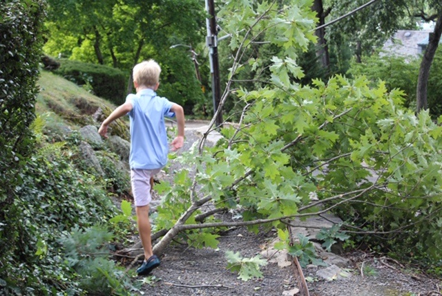 Aug. 5, 2020: Tropical Storm Isaias blew through Bronxville yesterday, August 4, leaving large downed trees and powerlines in its wake. A huge tree in front of the Reformed Church of Bronxville (picture above) fell along with other trees and branches in Bronxville.