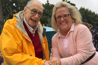 Pictured here:  Mayor Mary Marvin with former mayor William Murphy at the tree dedication at the ceremony at The Nature Preserve.