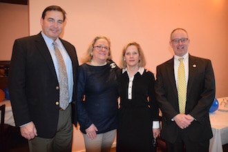 Pictured here (L to R): Neil Edwards, president of PangoUSA, Mayor Mary Marvin, Deputy Treasurer Peggy Conway, and Village Administrator Jim Palmer.