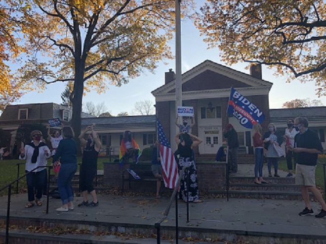 Across the country, spontaneous dance parties were held as supporters waved American and BIDEN/HARRIS flags and jumped for joy. History was made as the first Black female Vice President was chosen, and those who worked to elect the BIDEN/HARRIS team, from Georgia’s Stacey Abrams to Unite Here Philadelphia, took a moment to savor the win. Elated Bronxville supporters held a dance party in front of Village Hall with drivers beeping their support.