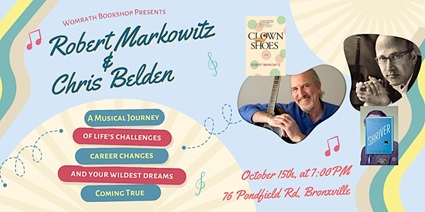 Oct. 15, 7PM: Author Event featuring Robert Markowitz, author of Clown Shoes, and Chris Belden, author of Shriver at Womrath Bookshop. Shriver was adapted into the motion picture A Little White Lie. Audience Q&A and author signing to follow. Learn more and register here.
