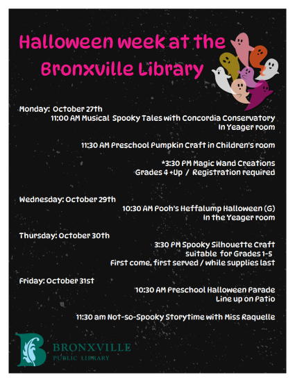 October 27 - 31, 2025: Halloween Week at the Bronxville Public Library