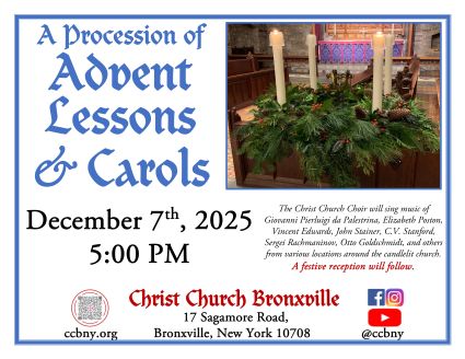 Dec. 7, 2025, 5:00PM: A Procession of Advent Lessons & Carols at Christ Church Bronxville, 17 Sagamore Rad.o
