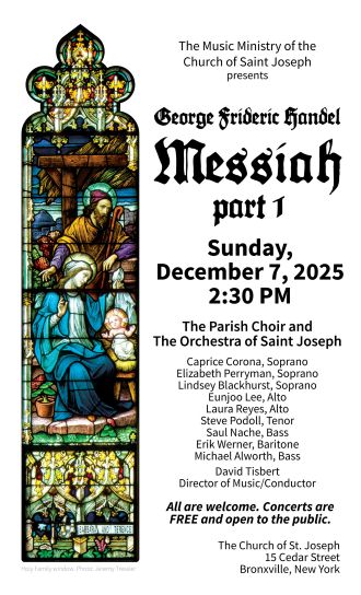 Dec. 7, 2025, 2:30PM: Messiah Park 1 at the Church of St. Joseph, 15 Cedar Street in Bronxville.