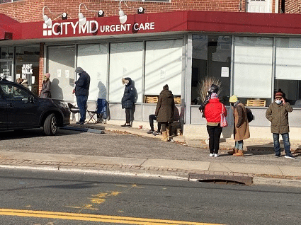 At CityMD Urgent Care in Eastchester, lines for Covid testing today Nov. 25 stretch around the block