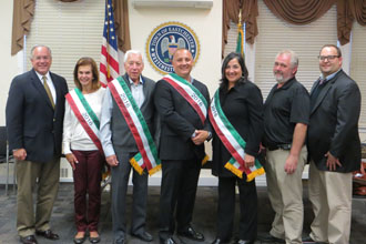 Pictured here (L to R): Supervisor Anthony S. Colavita, honorees Diane Senderoff and Elliot Senderoff, grand marshal James Romeo, honoree Rita Mastroberadino, Will Humphreys of Value Drugs, grand sponsor, and committee chairman Stuart Rabin.