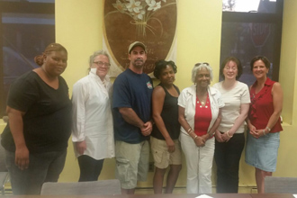 Pictured here (L to R): Stephanie Palmer, Mayor Mary Marvin, Danny Lang, Marilyn Graham, Lovely Billups, Claudia Tagliaferri, County Legislator Sheila Marcotte.