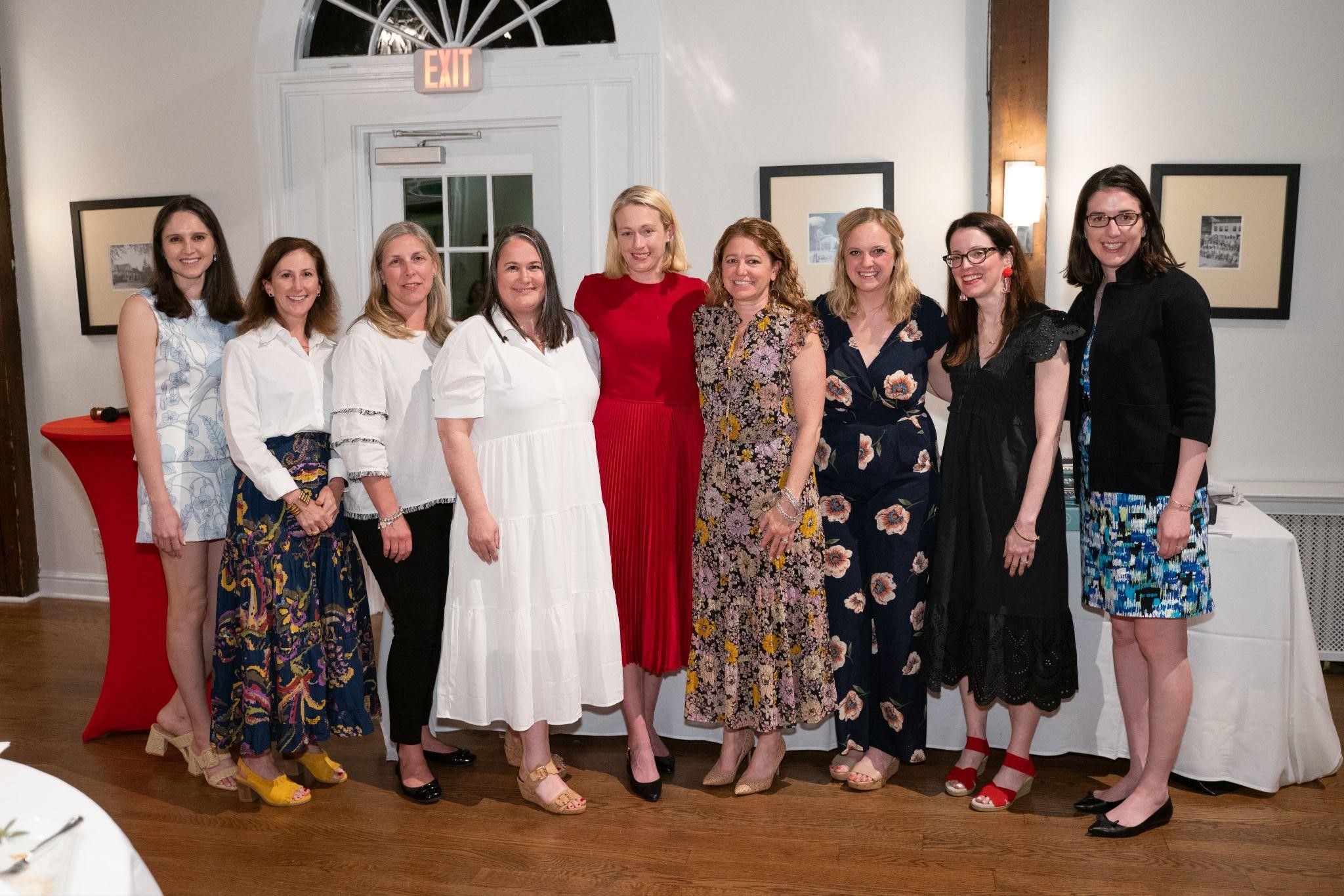 Members of the JLB 2024-25 Board of Directors and Management Team. Left to Right - Taylor Gari, Diana Deichert, Heather Scholes, Amy Berg, Jamie Powell Schwartz, Kelly Shine, Melanie O’Sullivan, Jennifer Carella, Beth Atsalis, Photo by Narrative View Media.