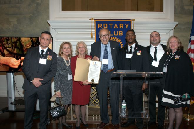 VRL Co-Founder Dre Popow, Bronxville Rotary President Susan Jonson, NY State Senator Shelley Mayer, Dr. George Unis, Veteran Antonio Ingram, VRP Co-Founders Christian Zamora and Marikay Satryano