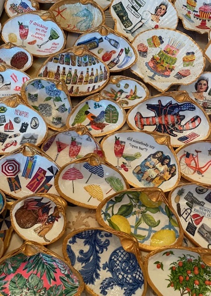 My shells have made their way to bachelorette parties, golf outings, rehearsal dinners, ladies get-togethers, dog groups and birthday parties. Over the holidays, both my Christmas oyster ornaments and Christmas shells could be seen at our fabulous local store, Mano a Mano. I've also participated in two Newport events where a portion of my profit goes directly to an adult special needs center.
