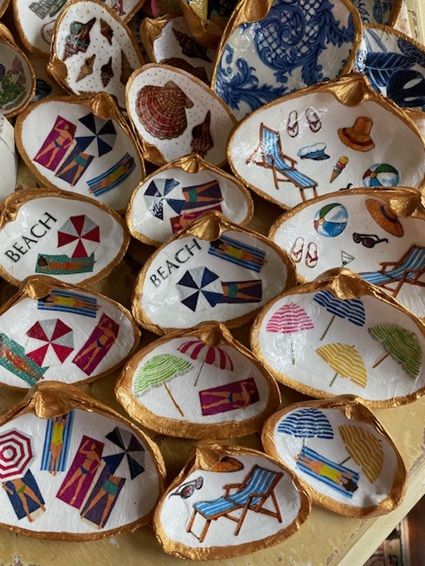 Designing shells became a natural transition because of my love of seashells, cocktail napkins, and painting. I love the finished product and think they enhance any home.