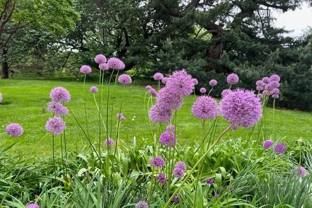 If going to a store, try heading to the clearance section of Home Depot. Look for Alliums (pictured). I would stay away from tulips because they only give you a good show for one year, and then they peter out the following years. Also, deer, chipmunks, and bunnies love tulips and crocus.