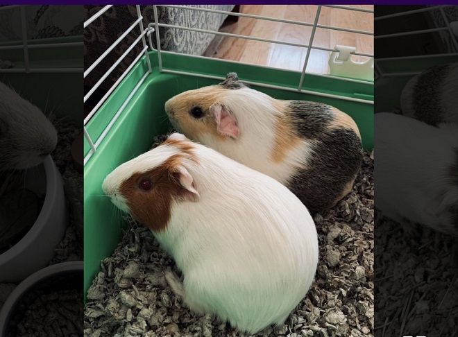 June 9, 2021: George and Theo are two young guinea pig boys looking for their forever home/s. Both are loving and friendly. Unfortunately, they were rescued from poor conditions and are now with a foster mom who has quickly come to realize that they have not bonded and should probably not be living in the same cage.
