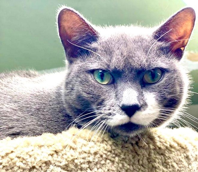 May 4, 2022: Meet Ducky, a funny, playful, curious and friendly adult Russian blue/American shorthair mix who is an absolute joy and a favorite amongst her caretakers.