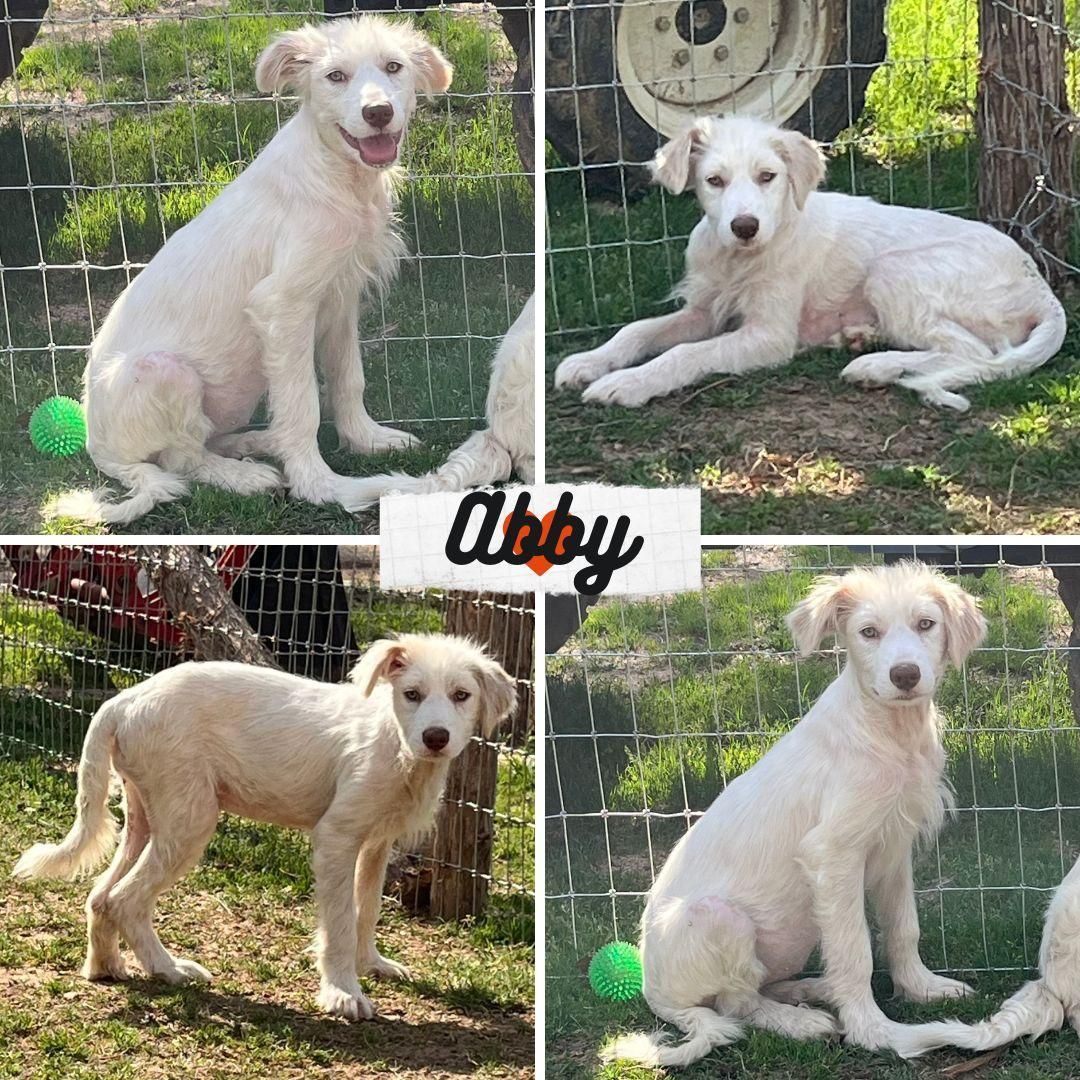 May 14, 2025: Abby is a beautiful 4½-month-old puppy believed to be a Great Pyrenees/Anatolian Shepherd mix.