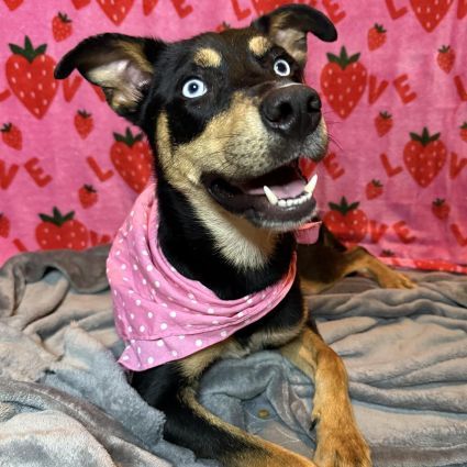 June 11, 2025: Birdie, an energetic one-year-old mix of Husky and German Shepherd, is excitedly looking forward to finding her permanent family.
