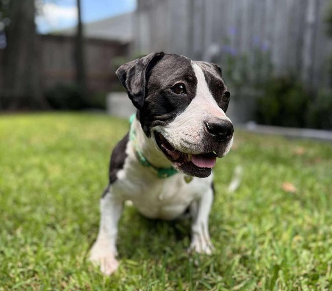 Peachy's energy level falls in the low-to-medium range. She enjoys exploring the yard, chasing toys, and the occasional lizard hunt, but she's equally happy settling down for a long nap. She doesn't need long walks or high-energy activities, making her an ideal dog for relaxed families. She's a velcro dog who bonds closely with her people and prefers being nearby.