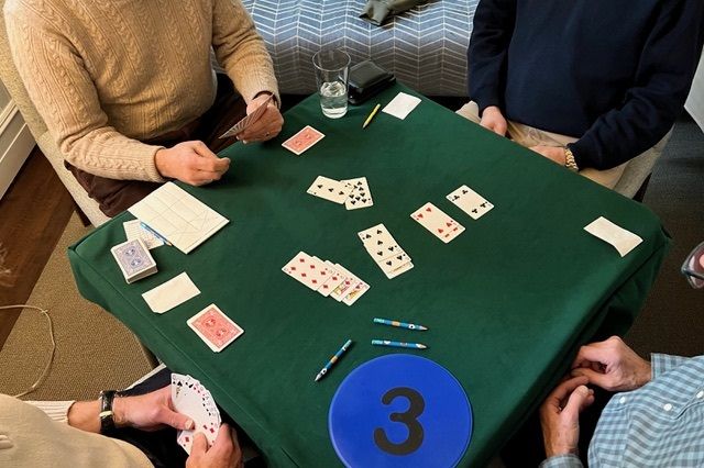 By contrast, Duplicate & Rubber bridge have slightly different scoring techniques, where players remain with the same partner for the day. This co-ed duplicate bridge game is played on Wednesdays at Siwanoy.