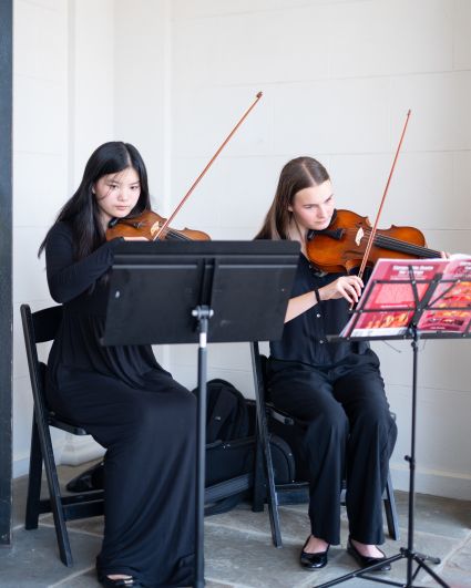 Pictured: Camille Gautier (viola) and Isabel Yeon (violin) warmly welcomed guests with live music at Gramatan Village’s Annual Benefit.