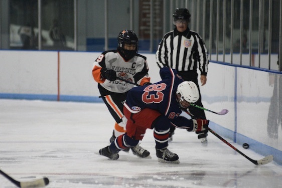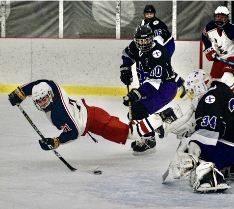 Will Stupart diving for the puck in the New Rochelle quarterfinals game. Photo by Mike Smith.