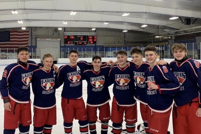This year’s ETBE team has one player from Edgemont and the rest are from Eastchester and Bronxville. Starters include Bronxville seniors Dillon (F) and Gretzinger (D), Bronxville sophomores O’Shaughnessy (F) and Dodson (D), and Eastchester seniors Luke Ferrara (F) and J.P. Rosabella (G).