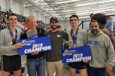 Mar. 6, 2019: At the New York State Championships held this past weekend, the Broncos finished the high school season on a high note. In track and field, Matt and Alex Rizzo won state championships in the 1000m and 1600m, respectively, and the girls’ 4x400m relay, Betsy Marshall, Caroline Brashear, Sabrina Mellinghoff, and Eve Balseiro, placed second in the state and third in the federation. The state championship race includes public schools across the state, and the federation includes all public and private schools.