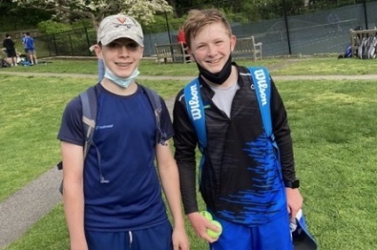 The first doubles team (Patrick Kenny and Rhys Brown) after their win over Blind Brook. Photo courtesy of S. Klurfeld