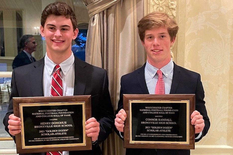 Donohue and Connor Randall, a football Second Team selection, were recently honored with the prestigious Golden Dozen award, which recognizes twelve Westchester County football players for their academic and athletic accomplishments. Football Coach Patsy Manganelli noted that these two players “have set the standard in both the classroom and on the field.”