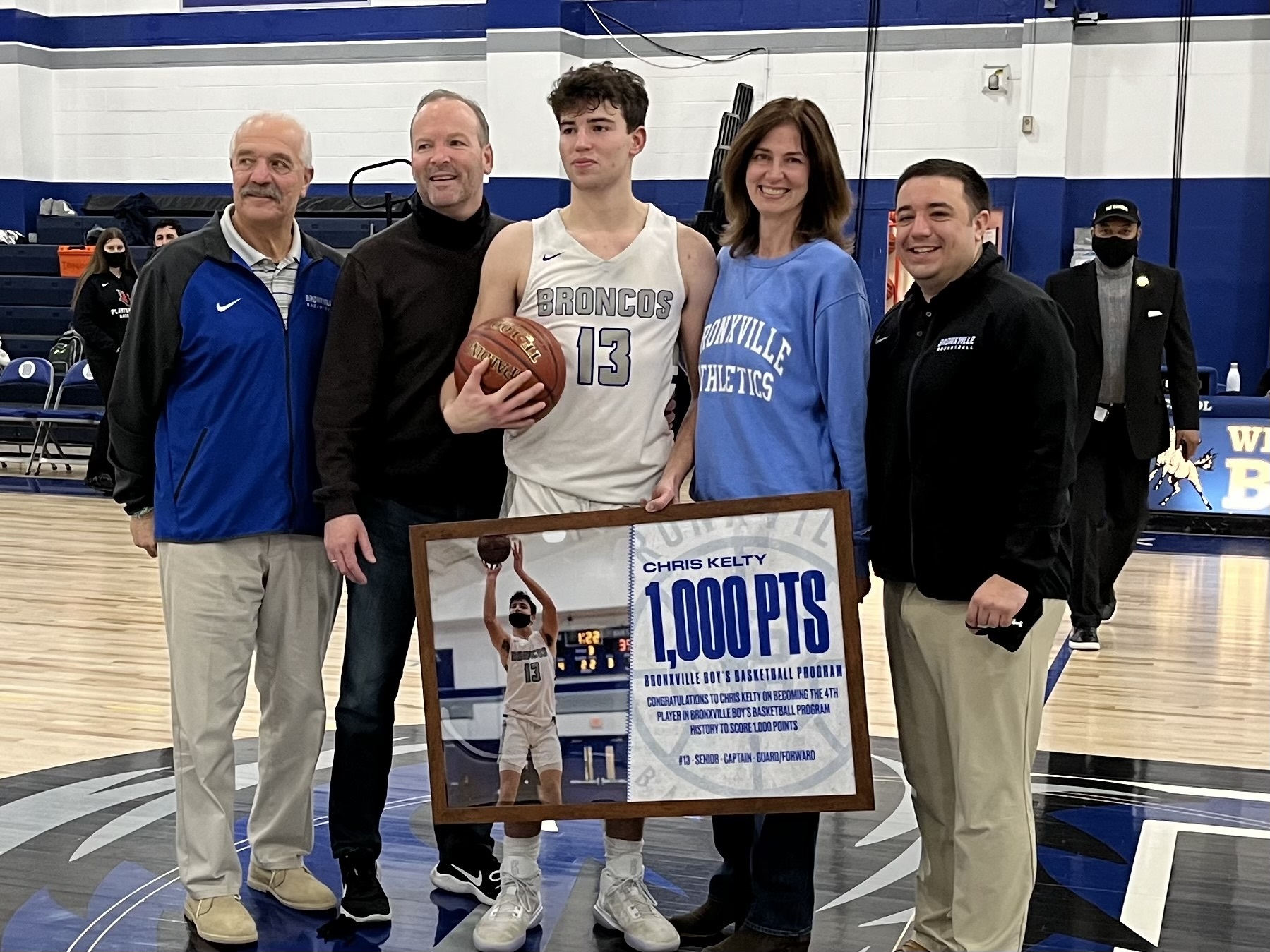 Chris Kelty being honored for scoring his 1000th point. Photo submitted by D. Kelty.