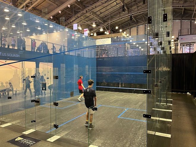 Eighth grader Matteo DelPrete plays center court at Arlen Specter U.S. Squash Center in Philadelphia