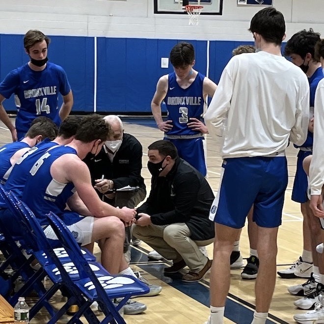 Coach Bobby Russo was recently named Coach of the Year for Conference 3. Conference 3 includes all Class B, C, and D schools in Section 1. Russo has been the head coach at Bronxville for five years, and Ralph Russo, his father, is the assistant coach. Russo played basketball at Archbishop Stepinac High School, and prior to coming to Bronxville, he coached at his alma mater.