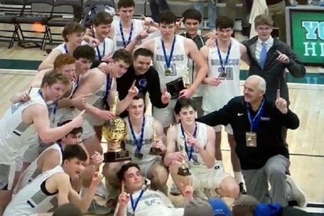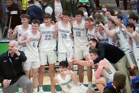 March 9, 2022: The Broncos celebrate the Sectional Championship after defeating Briarcliff on Saturday. Photo by J. Murrer.
