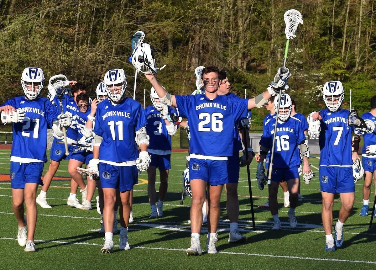 May 11, 2022: The Bronxville boys’ lacrosse team faced some of its toughest Class D competition this past week and ended the regular season on a high note. They picked up a 12-9 victory over No. 3 Pleasantville last Wednesday, and defeated No. 1 Briarcliff in overtime on Monday. Bronxville, Briarcliff and Pleasantville are all top-ranked teams in the state.