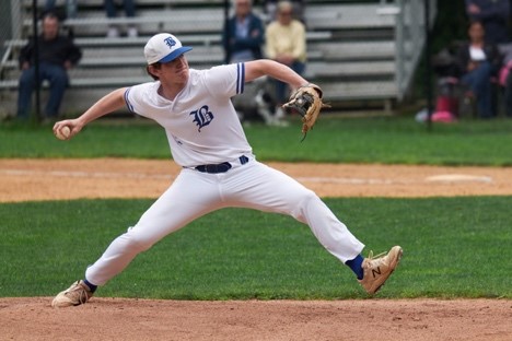 Pitcher Chris Lockwood in yesterday’s game against Albertus Magnus. Photo by David Fenner.