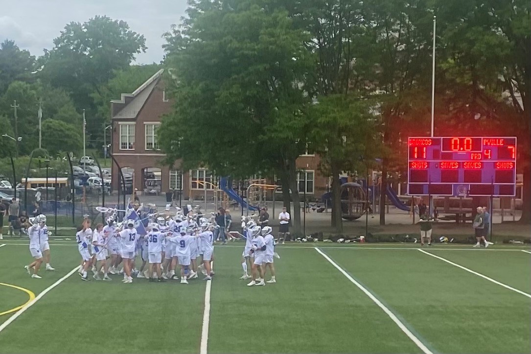 The No. 2-seeded boys’ lacrosse team defeated Haldane 17-1 in the sectional quarterfinals on Friday. The game was scheduled to be played at home in the late afternoon, but the Broncos chose to travel to Haldane to play at 2PM so that they could return home to attend the Bronxville prom.