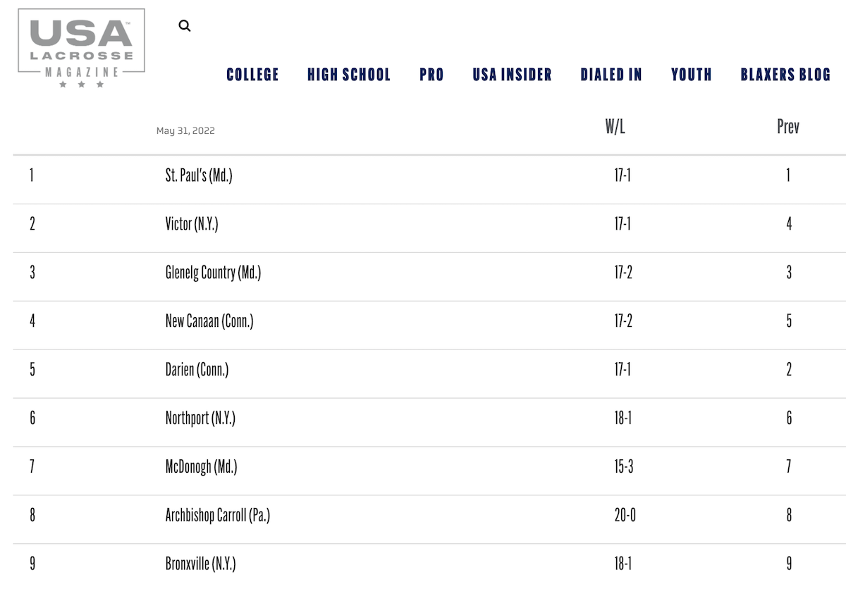 Bronxville may be a Class D school, but this team has defeated schools in all classes. The Bronco’s only loss was in overtime to New Canaan. In the May 24th national rankings by US Lacrosse Magazine, Bronxville is ranked No. 9 and New Canaan is ranked No. 5.
