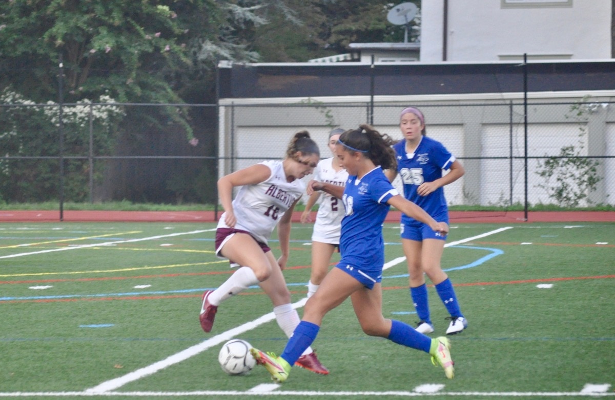 Bronxville girls’ soccer in the game against Albertus Magnus yesterday. Photo by J. Murrer.