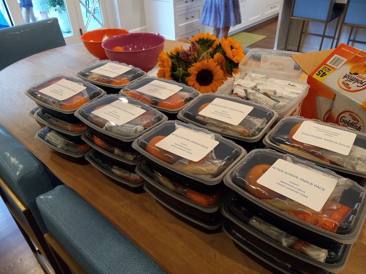 Parent Michele McBride organized the snack packs at one of the cross country dinners, and Lauren Toal and Karin Drakenburg Goodson helped with the delivery.